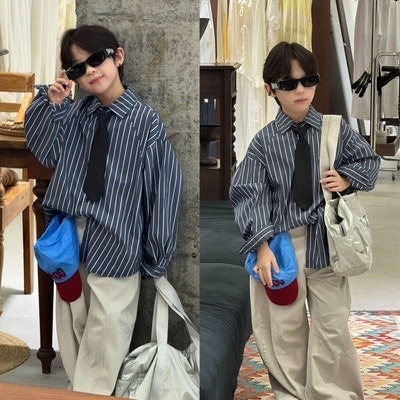 줄남방넥타이와이드바지셋 / 수입